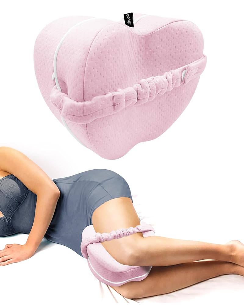 Memory Foam Knee Pillow for Back Sleeping - Half Moon Bolster Leg Support, Washable Cover, 17" x 7.5" x 4.3"