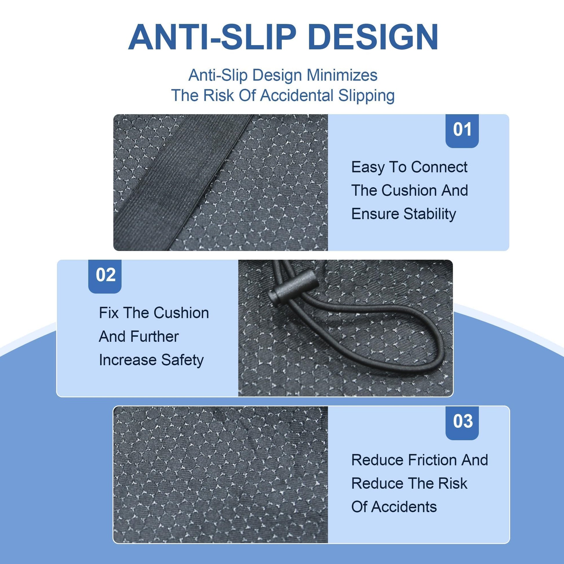 - Secure Elastic Strap - Easy attachment system keeps cushion firmly in place