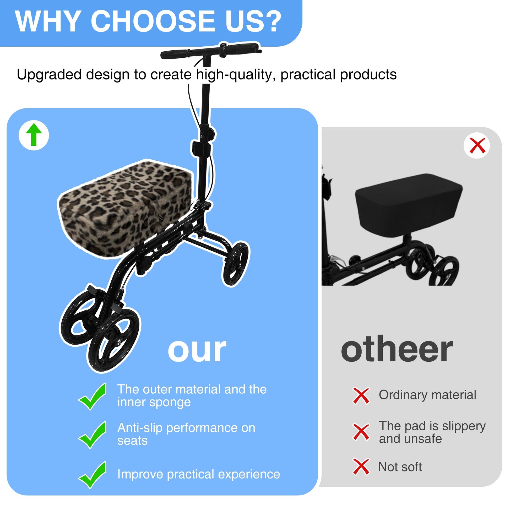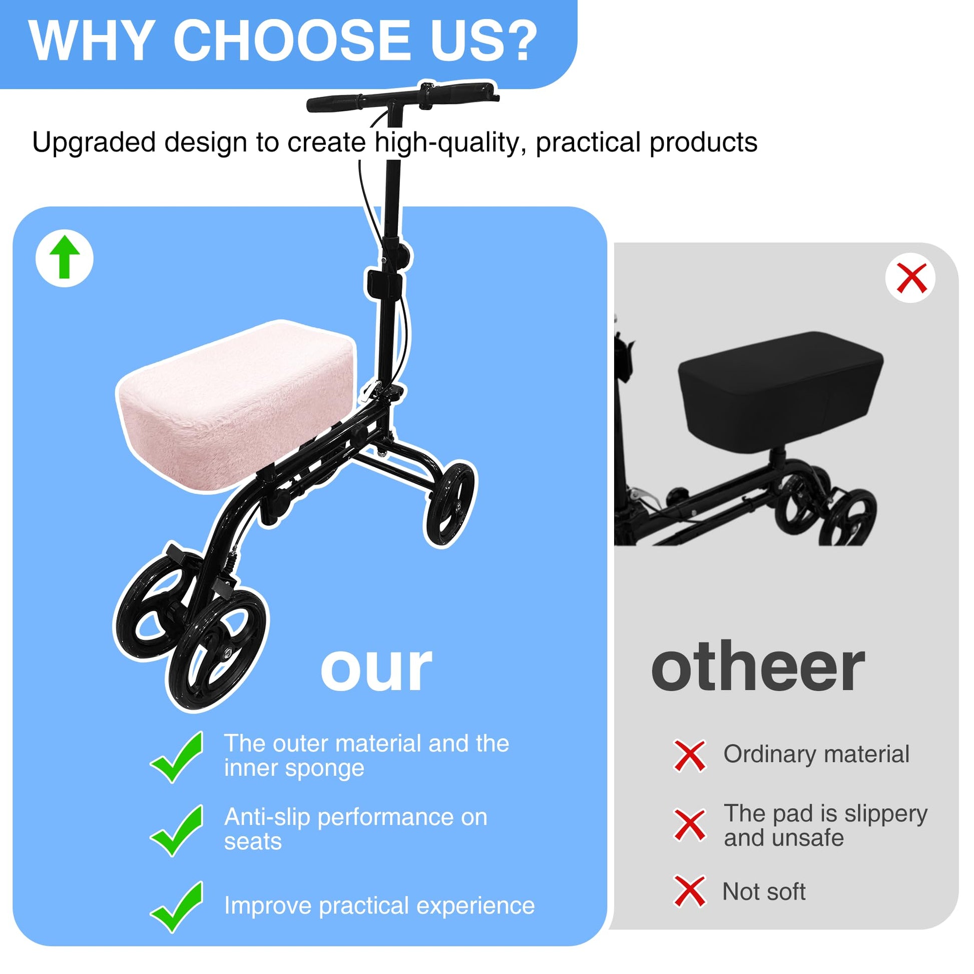 - Universal Fit Design - Stretchable elastic base fits most knee scooters and walkers