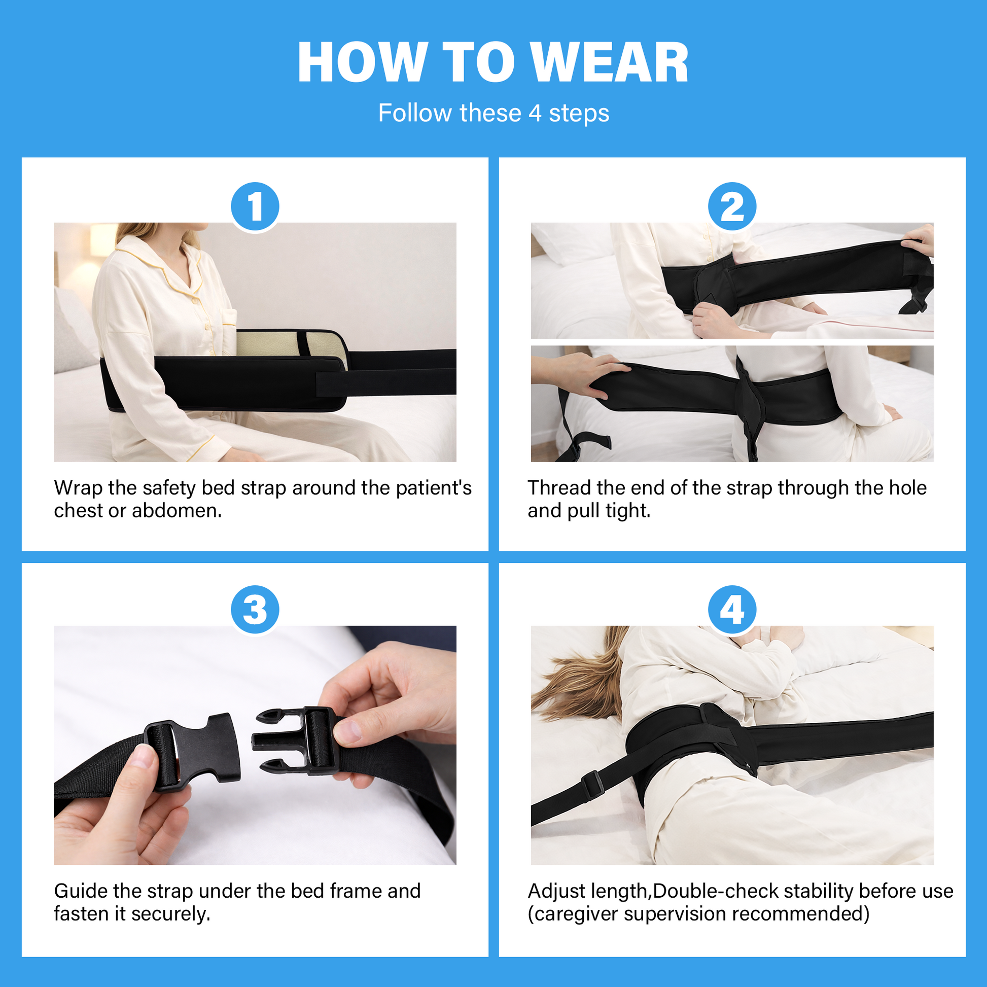 SPRING SEAON Bed Support Strap - Adjustable Positioning Belt for Bed & Wheelchair, 51.7 * 7" Padded Waist Belt Black